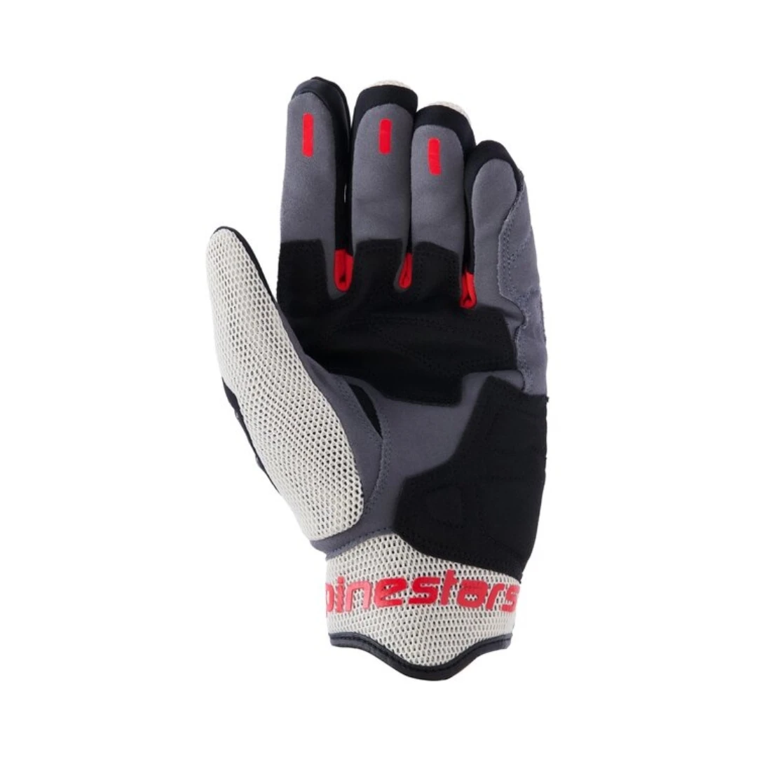 - Dosul mâinii din material textil perforat cu laser cu inserții mesh 3D pe degetul mare, manșetă și lateralele degetelor