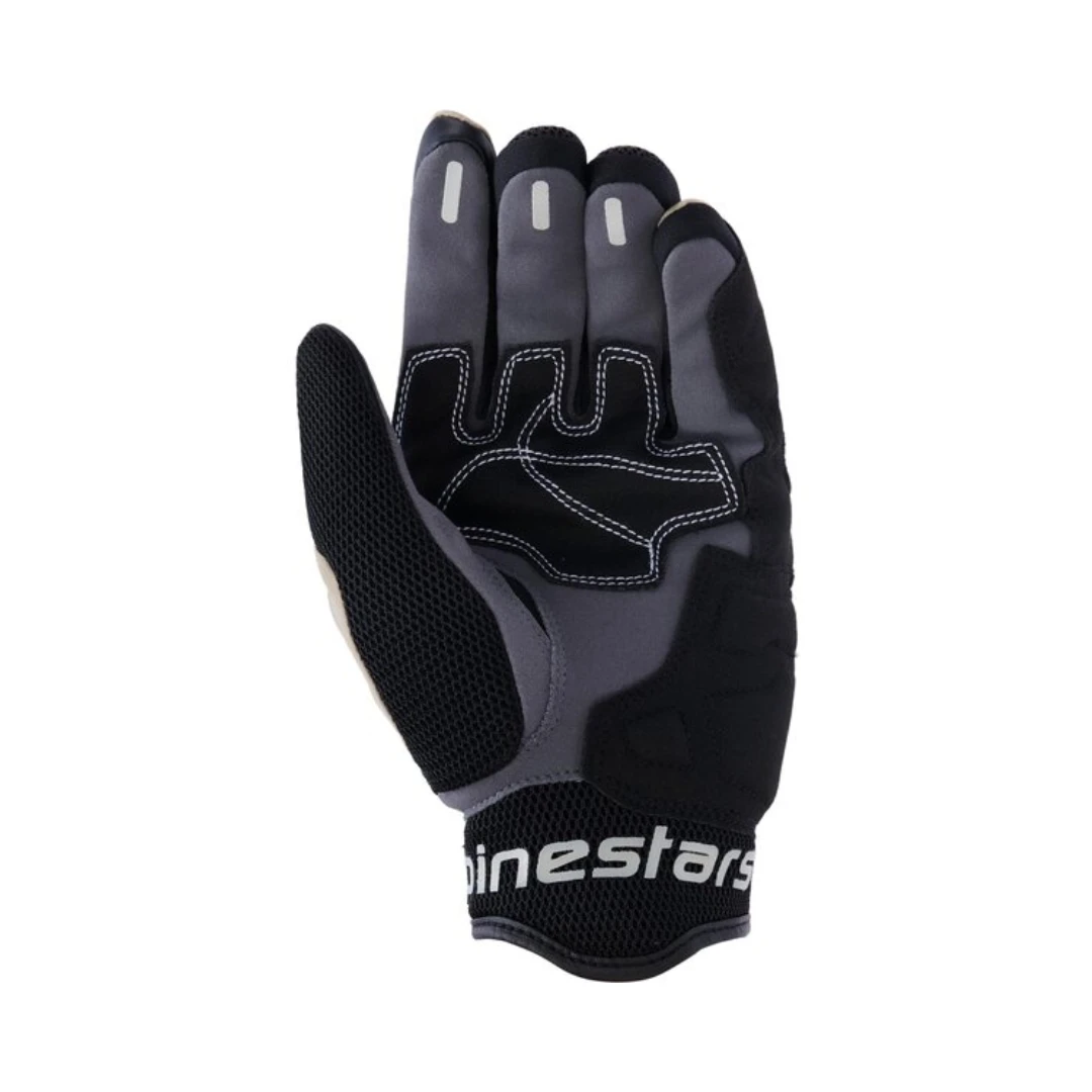 - Dosul mâinii din material textil perforat cu laser cu inserții mesh 3D pe degetul mare, manșetă și lateralele degetelor