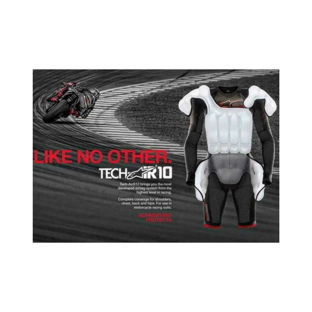 Tech-Air® 10 este cel mai avansat airbag autonom de la Alpinestars, creat pentru a duce protecția motocicliștilor la un nou nivel. Derivat direct din tehnologia MotoGP, acest sistem oferă acoperire extinsă pentru umeri, claviculă, piept, spate și șolduri, devenind alegerea ideală pentru piloții de curse, track day sau touring sportiv.