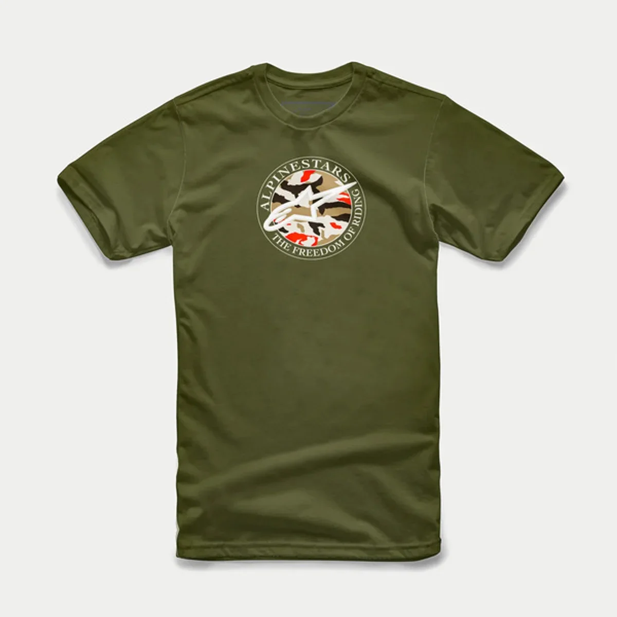 - Grafică Alpinestars classic logo pe fond camo, imprimată pe față, cu un aspect moale la atingere.