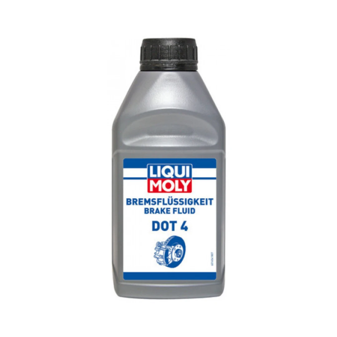 Lichid de frână Liqui Moly DOT 4 este un lichid sintetic de frână pe bază de glicoleter, alchilenpoliglicol şi poliglicolester. Conţine inhibitori care împiedică coroziunea părţilor metalice ale sistemului de frânare şi diminuează oxidarea la temperaturi ridicate. Prin aceasta nu se pot forma produşi de descompunere pe bază de acizi. Acest produs a fost special conceput pentru a mări durata de viaţă a pieselor sistemelor de frânare şi cuplare hidraulice ale autovehiculelor. Are un punct de fierbere în stare uscată şi umedă ridicat, garantându-se astfel o frânare sigură chiar şi după acumularea de umezeală după o perioadă mai lungă de utilizare. Soluţii speciale de clătire contribuie la protecţia împotriva formării unor bule de aburi. Lichidul de frâne este recomandat şi pentru folosirea în sistemele de frânare cu ABS.